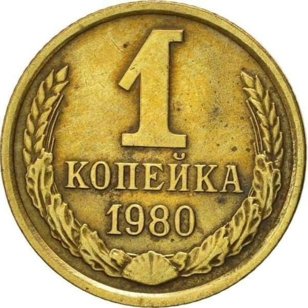 • الوجه الأول: يظهر الرقم “1” مع كلمة “КОПЕЙКА” (كوبيكا) أسفلها وسنة الإصدار “1980”. يحيط بالرقم غصنان من القمح، وهو رمز للزراعة وأهمية الإنتاج الغذائي في الاتحاد السوفييتي.